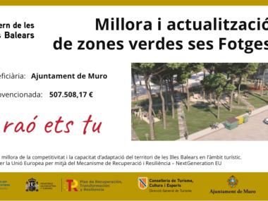 Aquesta actuació es durà a terme gràcies a la subvenció de 507.508 euros de la Unió Europea Next GenerationEU, de millora de la competitivitat i la capacitat d’adaptació del territori de les Illes Balears en l’àmbit turístic, en el marc del PRTR.