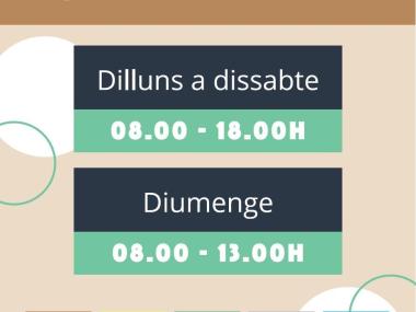 De Dilluns a Dissabte: 08:00h a 18:00h